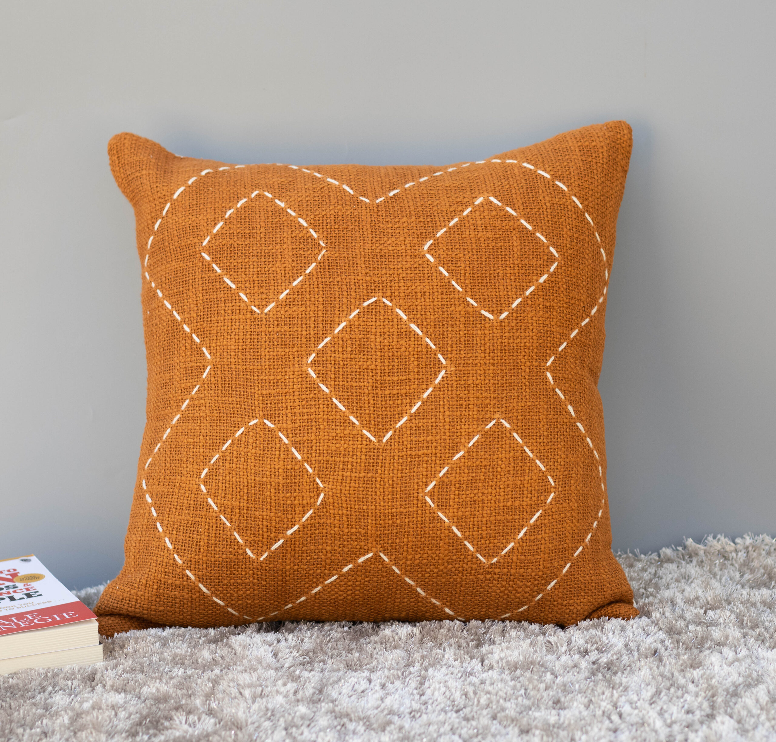 Dress your pillows with this beautiful pillowcases comes with Hand Kantha Dimond Pattern design , Throw them on a couch in your living room or your bedroom and add a natural + modern touch to any space in your home. This Rust Pillow Cover Cover Made with cotton and wool. Cushions are a great way to add color and texture to a living room, bedroom, lounge area, arm chair, sofa, couch, nook or seating area